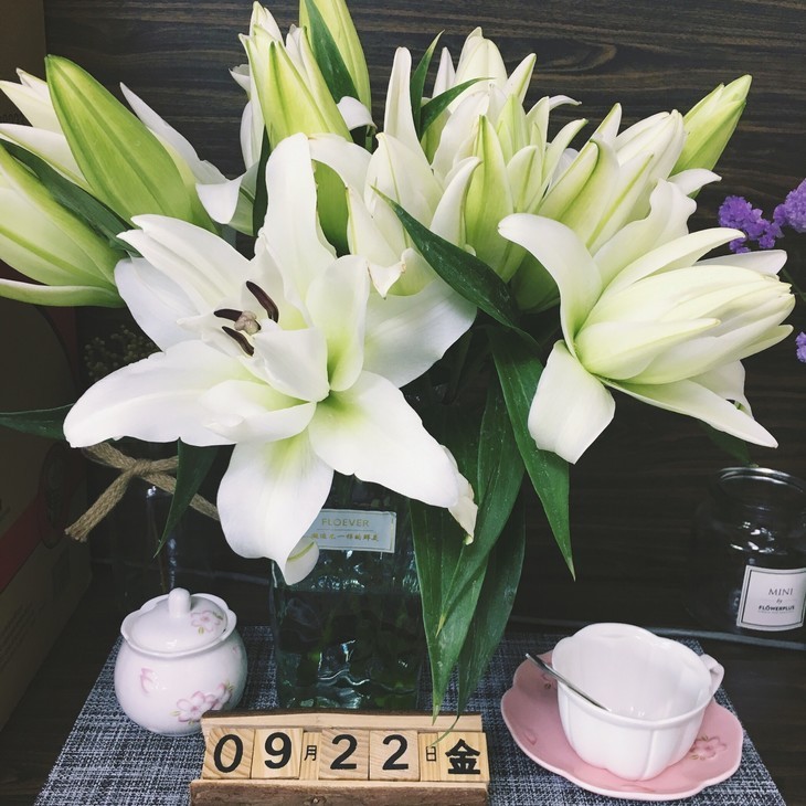 重瓣百合却是以百合之姿开出了不输牡丹芍药的馥郁繁盛。还是那样舒展修扬的花瓣,超过20瓣层层叠叠影影绰绰地叠复在一起,雍容华贵,婀娜大气,叫人一见倾心。重瓣百合是近年来新培育出的百合杂交品种,尤其是近两年,随着种植技术日趋稳定成熟,使得重瓣百合得以出现在切花市场,并凭着它大气华美的品相很快赢得了花艺师和消费者的喜爱。