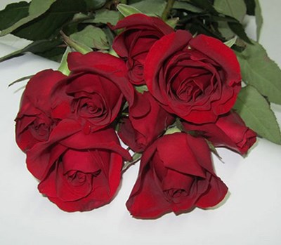 切花月季的一种,颜色是深红,厚厚的花瓣上黑色中透着红色,红色中又透着黑色,花型规则美观,有种厚厚的绒感,给人以华贵神秘之感。
